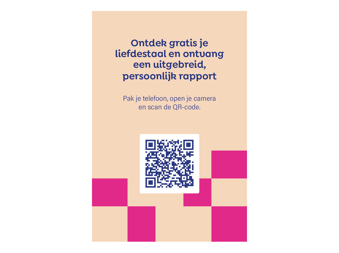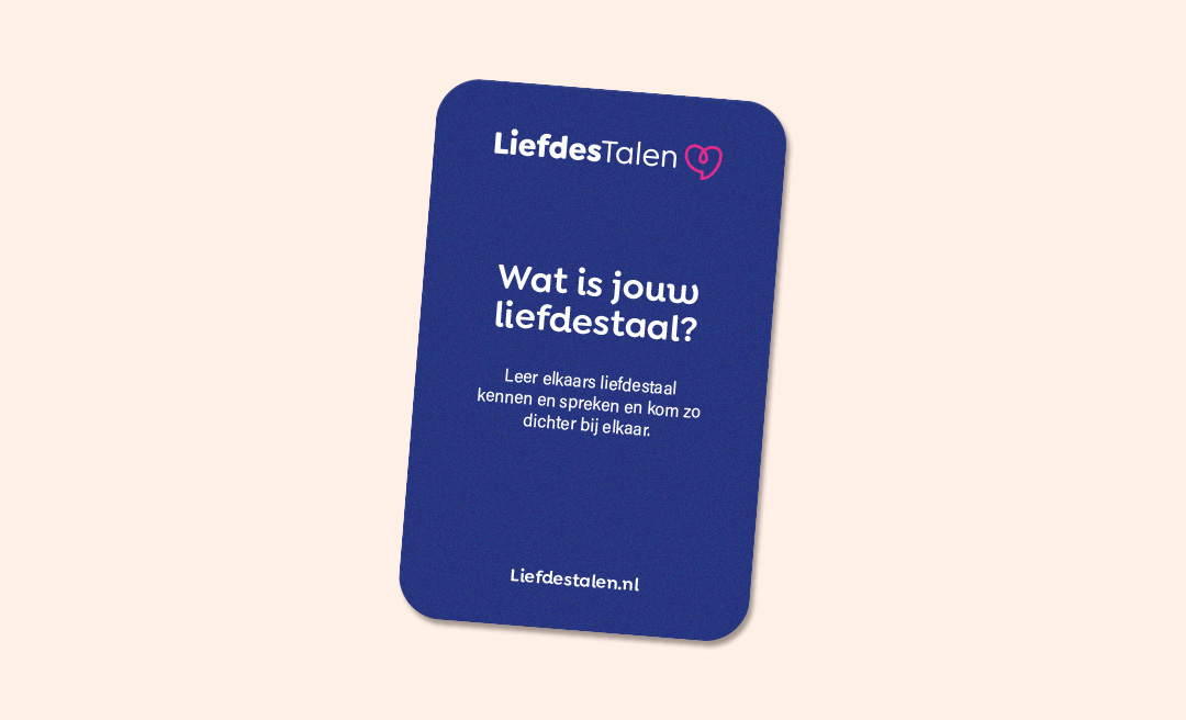 Elk kaartje nodigt uit om de liefdestalentest op liefdestalen.nl te doen — een korte, krachtige én gratis test die inzicht geeft in hoe iemand liefde geeft én ontvangt.